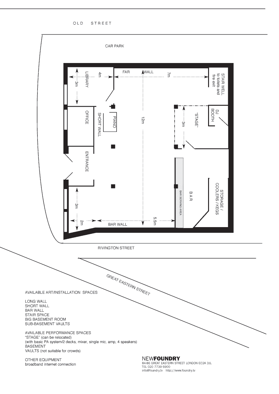 we want a piece of your work at the end of the showopening night / pv / party - can be on Tuesday, Wednesday or Thursday but not on the weekends, the Foundry gets too busy. If you want to arrange entertainment for your night that is fine but you need to book the date with us first.